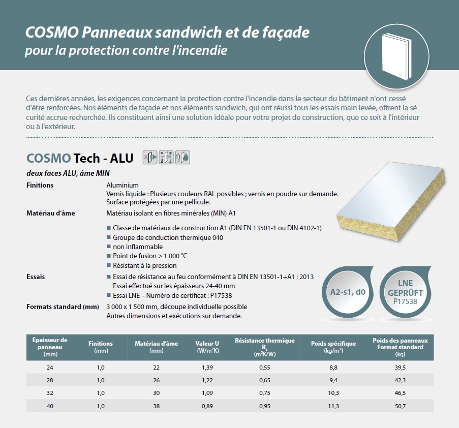 Panneaux sandwich et de façadepour la protection contre l'incendie.