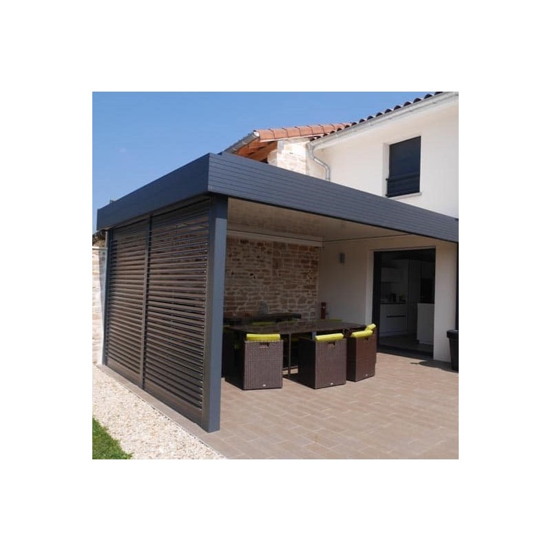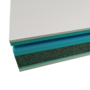Différence avec le "flat tech acoustique" : pas de membrane de 3mm à l'extérieur du panneau collé sur l'aluminium, cette membrane permet de diminuer le bruit de la pluie.